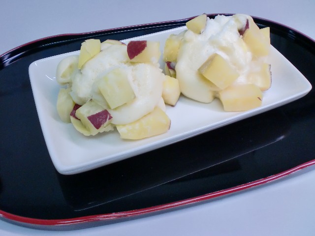 昔懐かしい、さつまいもをサイコロ状にしてちりばめ蒸したまんじゅうです。